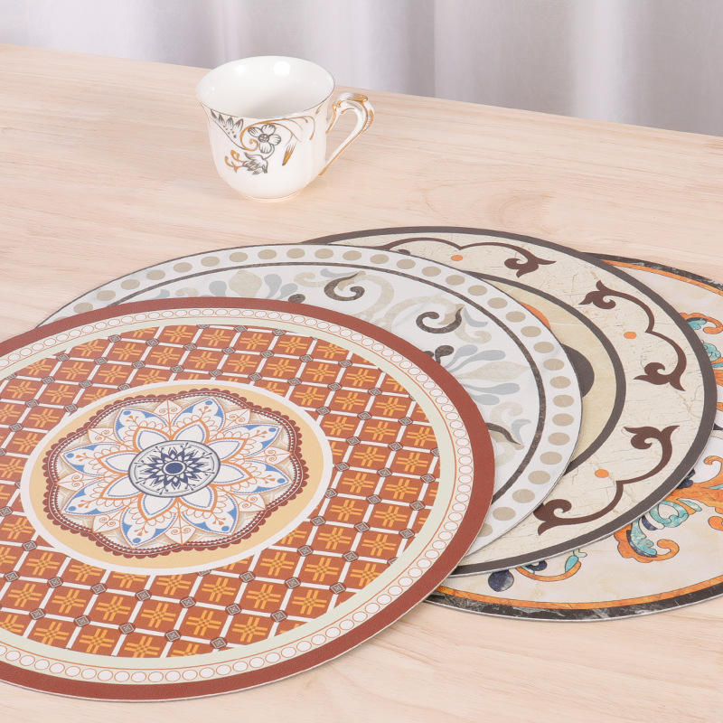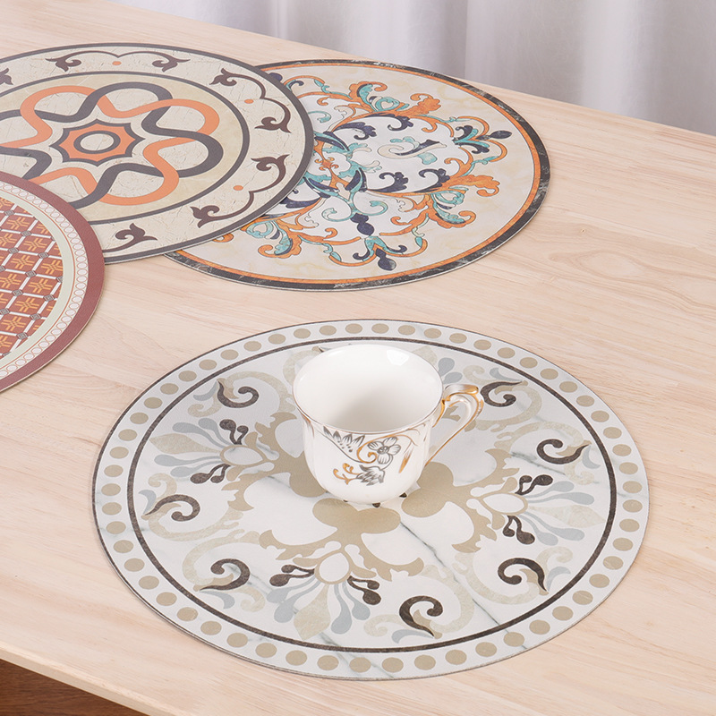 # 冷叶餐垫圆形美式复古西餐垫餐桌垫防滑酒店餐具隔热垫轻奢杯垫批发市场