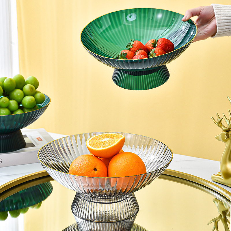 # 严选北欧风轻奢高脚水果盘PET高透加深加宽自带沥水大容量水果盘厂家