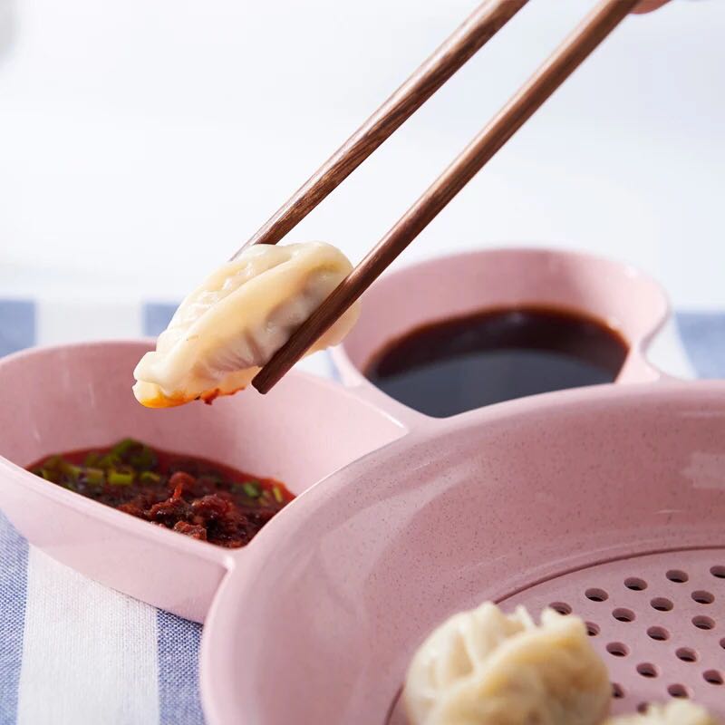 # 义乌好货 可爱兔子饺子盘家用双层沥水盘水饺盘吃饺子盘带醋碟批发市场