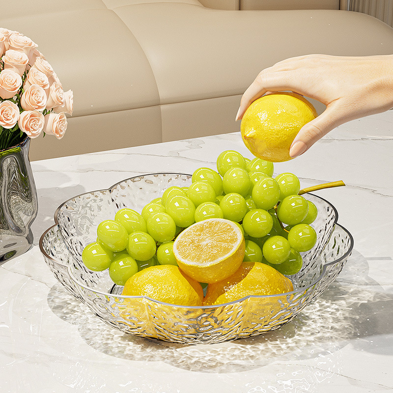 # 新款PET材质水果盘零食盘 中式家用日用餐厨花型果盘 可激光LOGO品牌