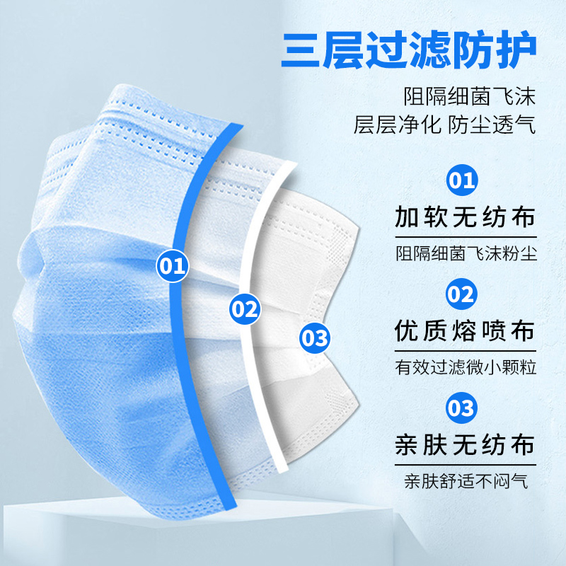 # 蓝色一次性医用口罩挂耳式防雾霾防唾沫三层防护舒适无纺布独立小包装医用口罩品牌