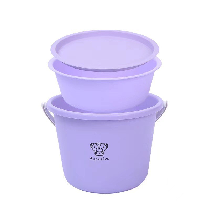 家用塑料水桶脸盆套装带盖加厚手提储水盆桶大容量学生宿舍洗衣桶