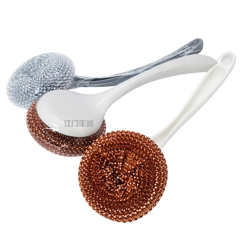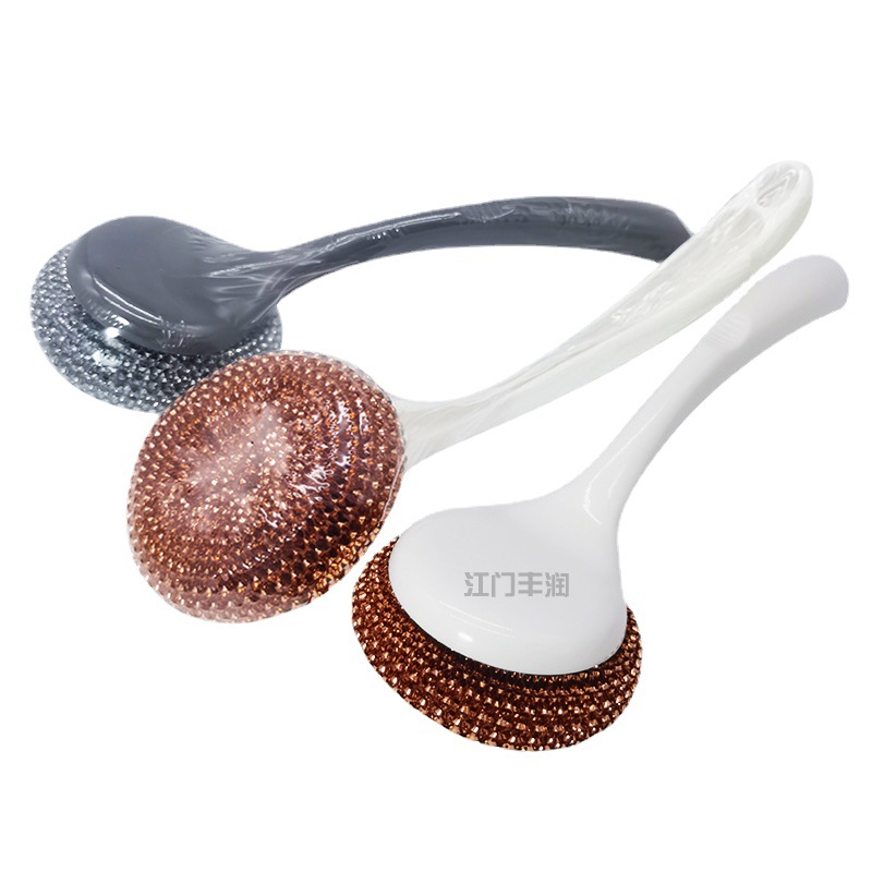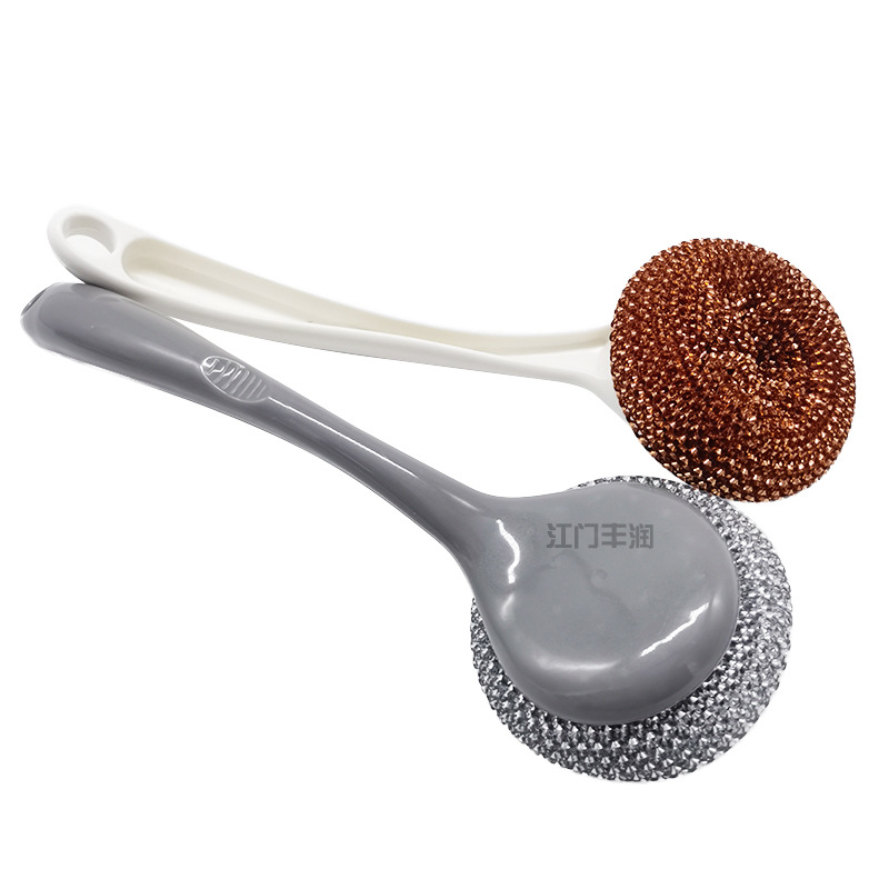 1808长柄锅刷塑柄塑料丝刷带柄钢丝球可拆钢丝清洁球刷子两元严选