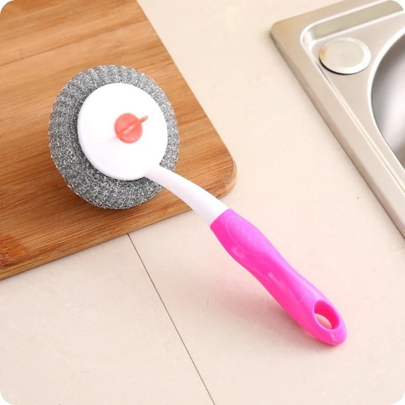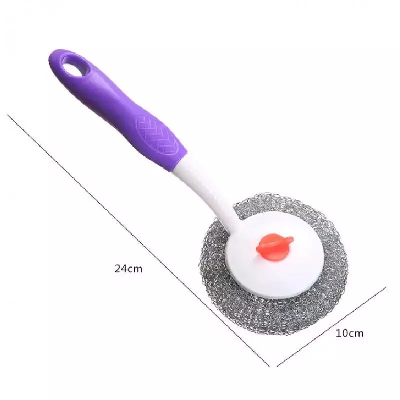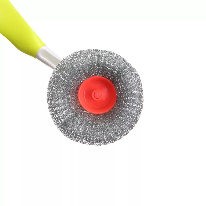 1808长柄锅刷塑柄塑料丝刷带柄钢丝球可拆钢丝清洁球刷子两元严选