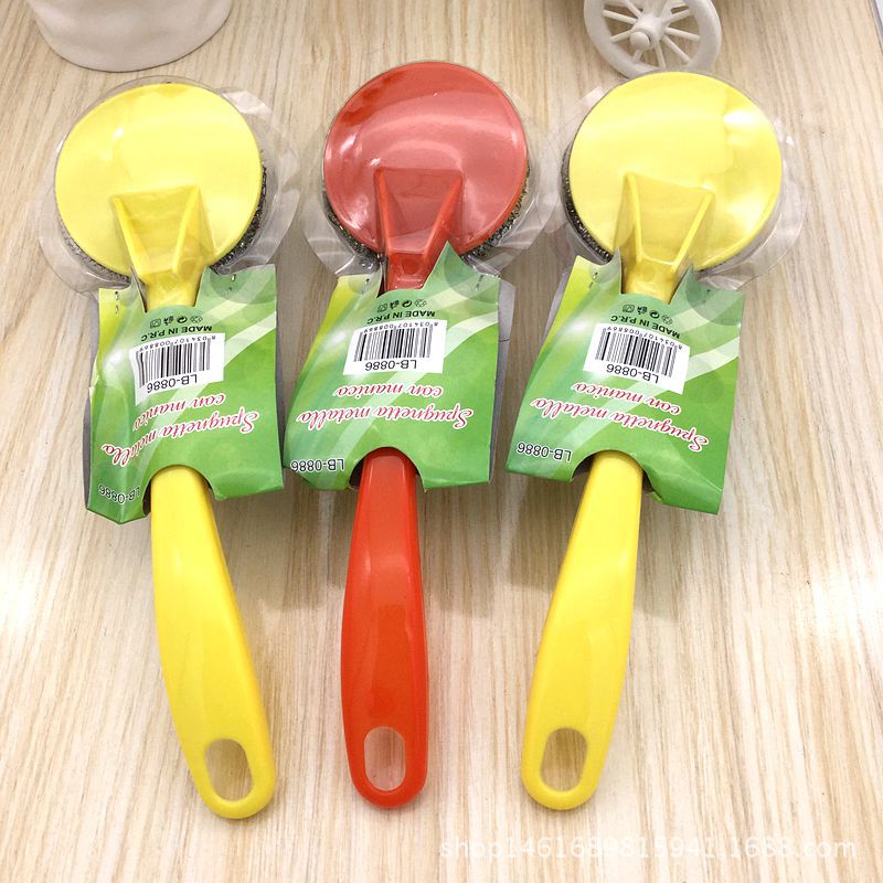 # 厂家直销钢丝球塑料长柄 2元店热卖批发家用厨房清洁用品大量批发品牌