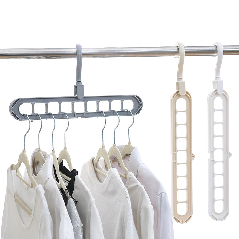 # 多功能九孔可折叠魔术衣架创意旋转收纳神器塑料防滑多层九孔整理批发市场