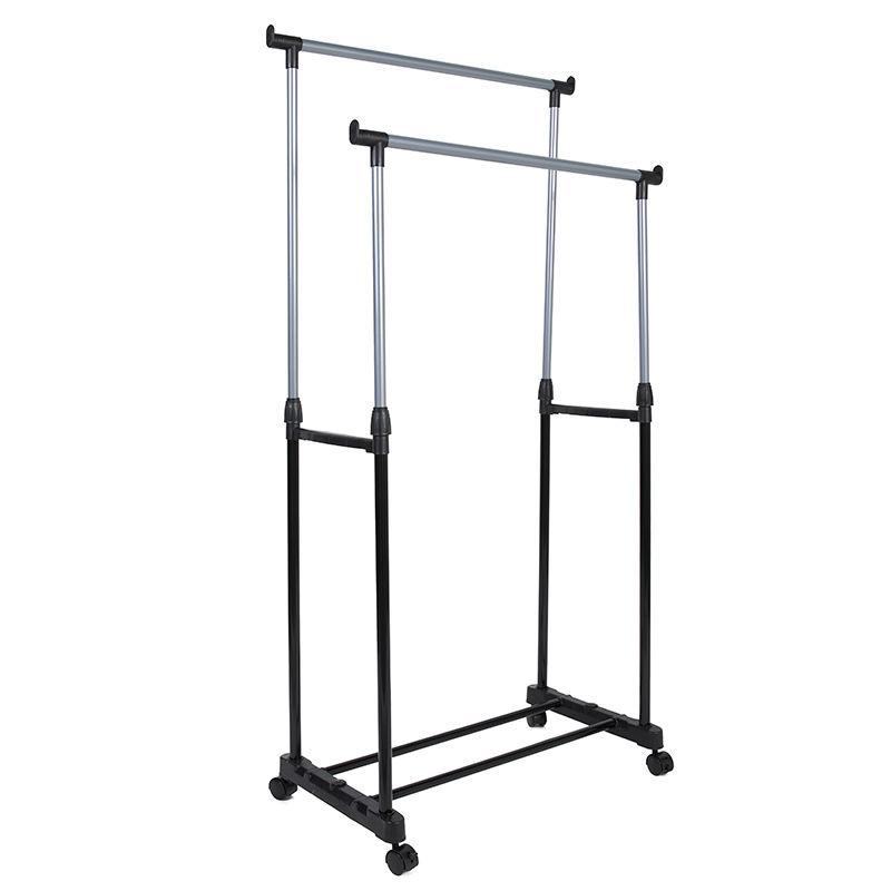 # 普通铁管小号升降晾衣架落地高低双杠不伸缩式衣服架移动带轮批发市场