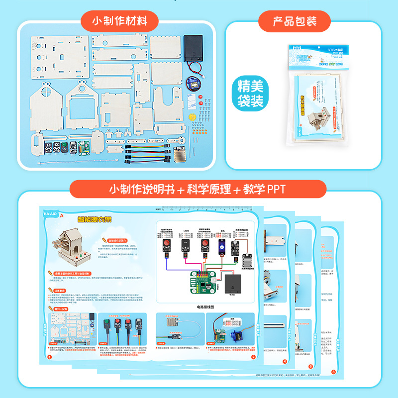 # 青少年科技小制作DIY智能晾衣架手工材料包STEAM创客教育学习用品批发市场