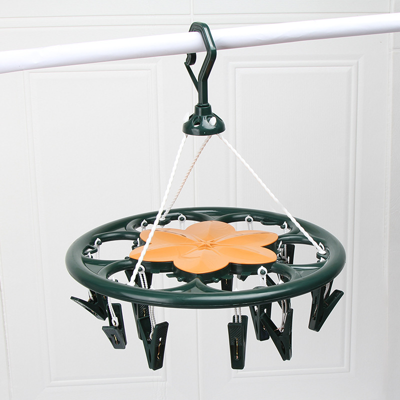 防风多功能塑料圆盘晾袜架袜子晒衣架夹圆形儿童婴儿带夹型