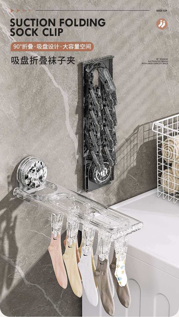 S44-2312640折叠衣架多夹子壁挂晒袜子神器晾衣架阳台内衣裤袜夹 晾衣架