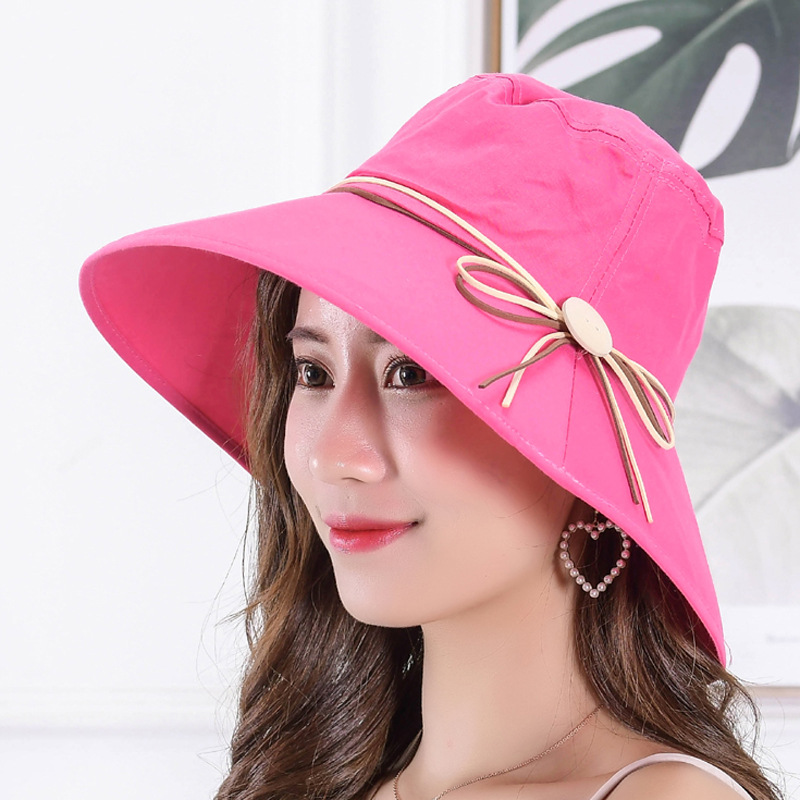 # 帽子女夏天韩版潮春季木扣时尚可折叠遮阳帽防紫外线大沿防晒帽批发市场