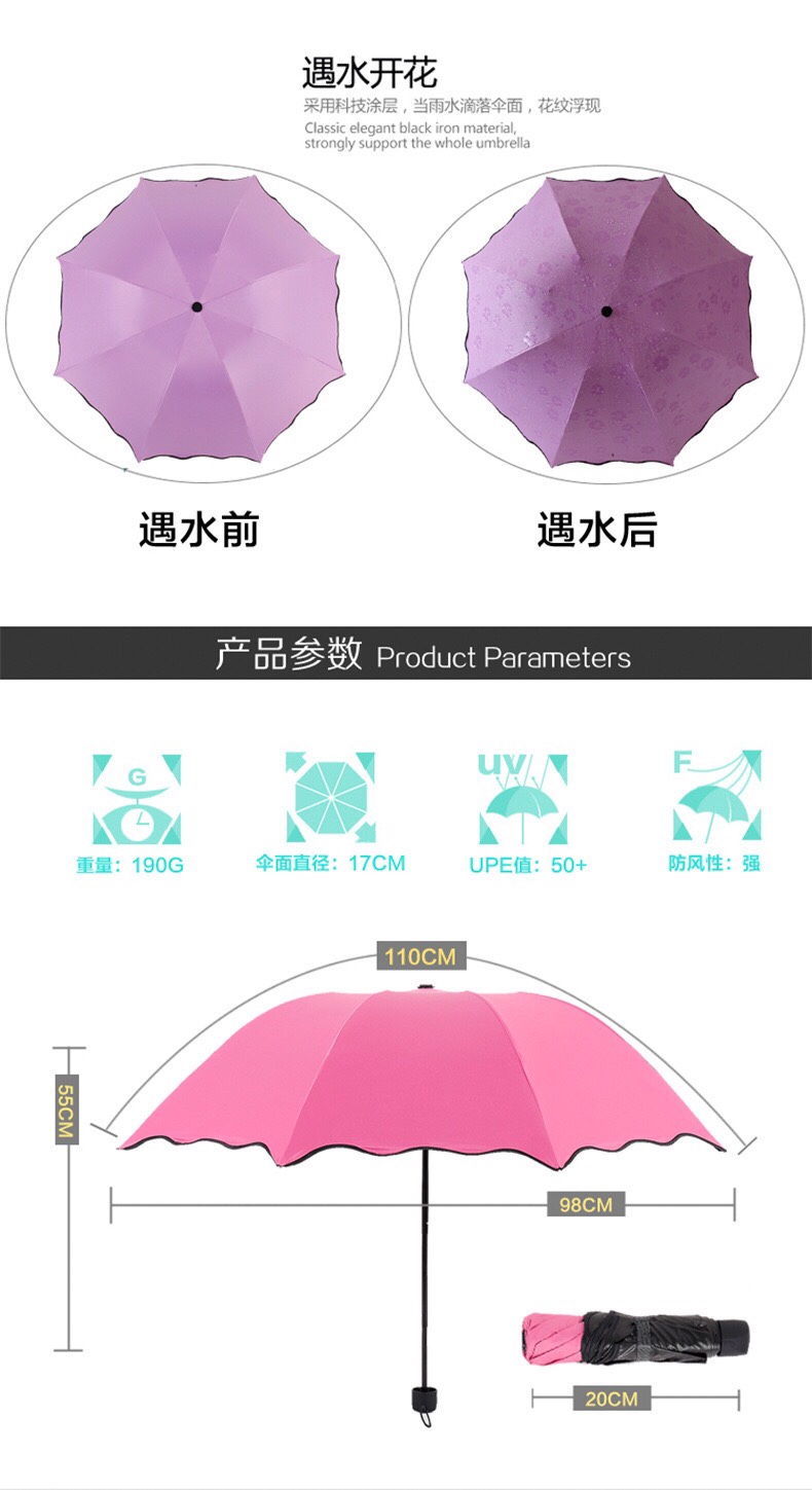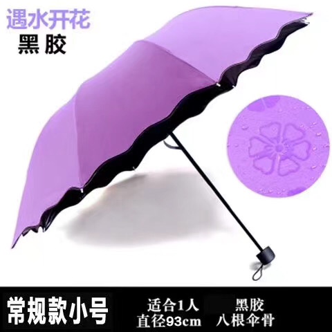 # 开花伞定制logo广告三折伞晴雨两用雨伞遇水开花伞黑胶防晒太阳伞 887价格