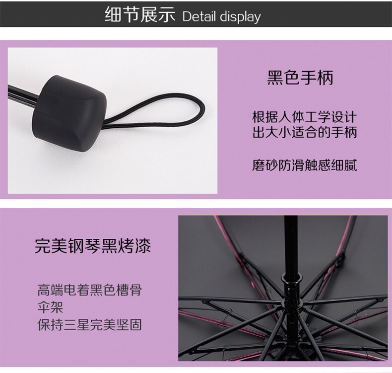 新款定制五折6骨手开黑胶面料数|码|印刷拉环手柄超小口袋伞防晒伞