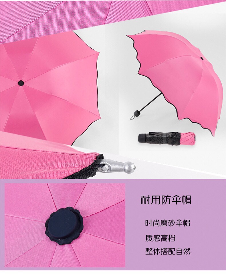 # 开花伞定制logo广告三折伞晴雨两用雨伞遇水开花伞黑胶防晒太阳伞 887图片