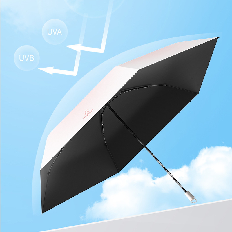 # 新款定制五折6骨手开黑胶面料数|码|印刷拉环手柄超小口袋伞防晒伞品牌