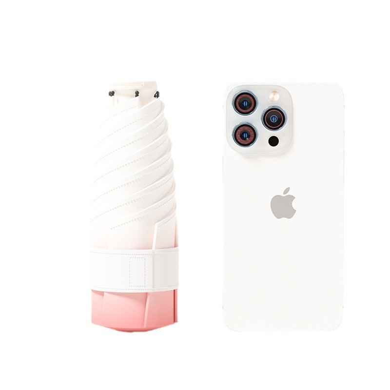 # 新款定制五折6骨手开黑胶面料数|码|印刷拉环手柄超小口袋伞防晒伞厂家