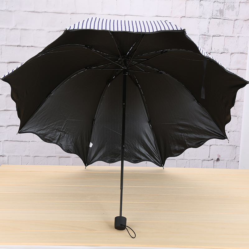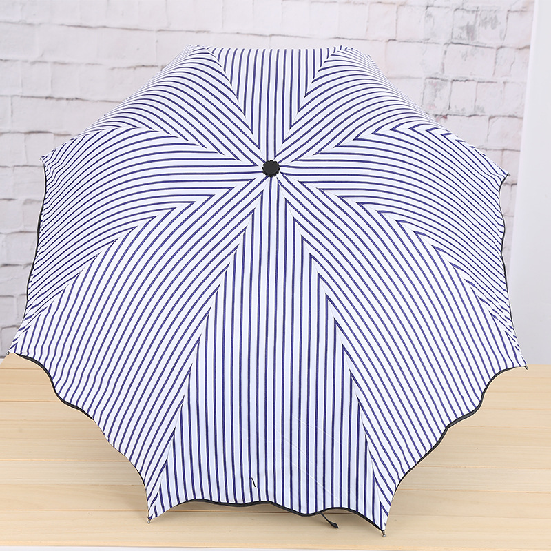 # 英伦风三折伞批发荷叶边海军条纹黑胶伞晴雨两用折叠广告雨伞批发市场