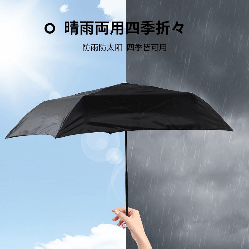 新款定制五折6骨手开黑胶面料数|码|印刷拉环手柄超小口袋伞防晒伞