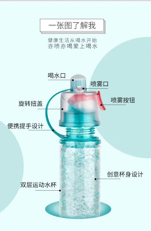 夏季创意喷雾水杯降温水瓶户外运动水壶便携喷水随手杯子