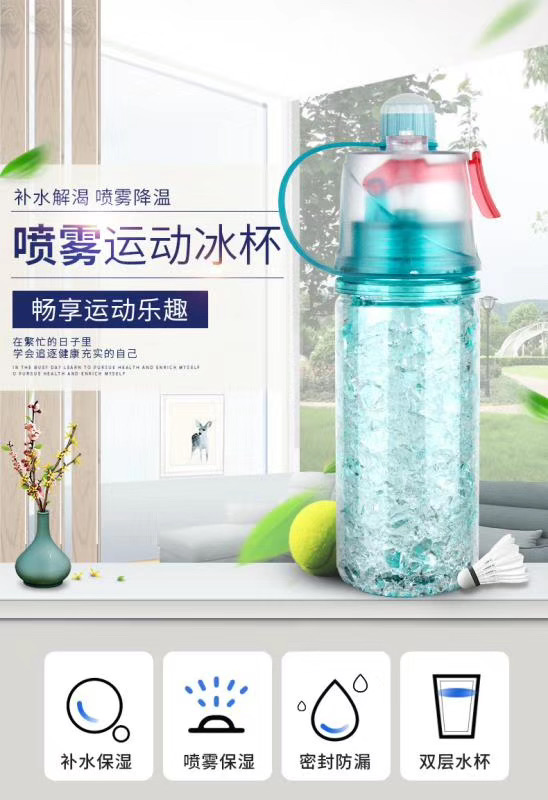 喷雾带盖水杯降温水瓶户外运动喷水随手杯