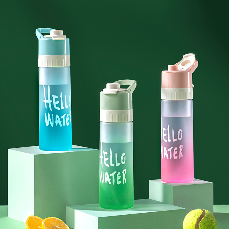 便携手提运动水杯喷雾水杯塑料杯 新款便携喷雾水杯400ml/600ml