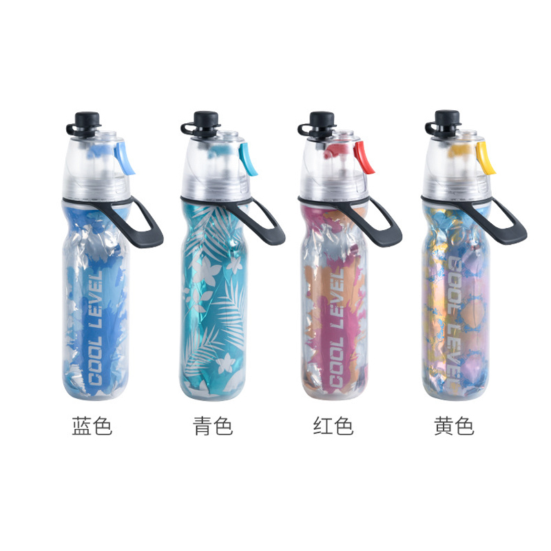 # 230526喷雾水壶-双层塑料保冰水壶自行车运动水壶 铝箔双层水壶骑行水壶水杯批发市场