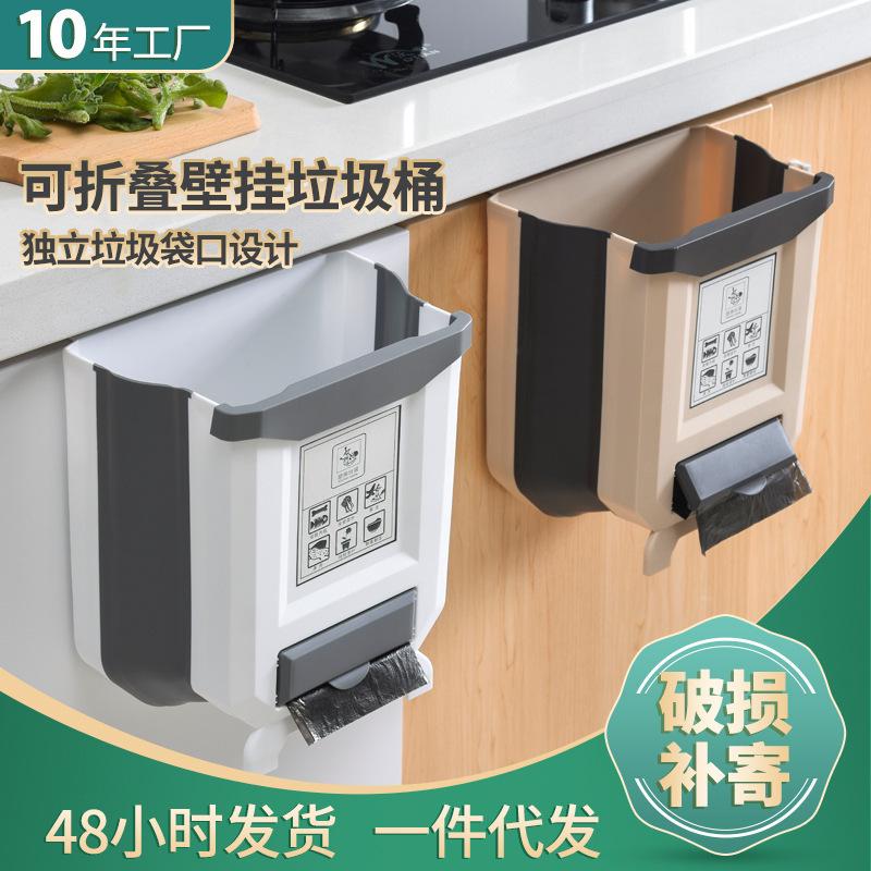 厨房垃圾桶挂式家用橱柜大号折叠壁挂收纳筒车载纸篓厨余垃圾篮