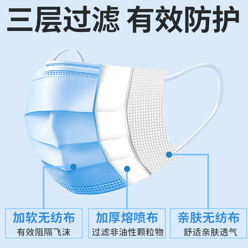# 证件齐全权威检测一次性口罩民用三层防护熔喷布防尘透气50只一包价格