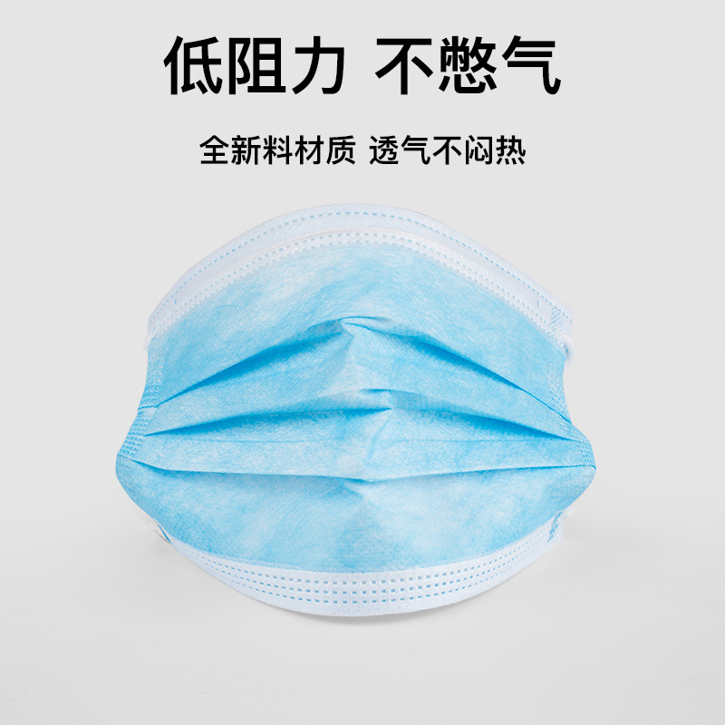 # 证件齐全权威检测一次性口罩民用三层防护熔喷布防尘透气50只一包批发市场