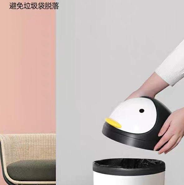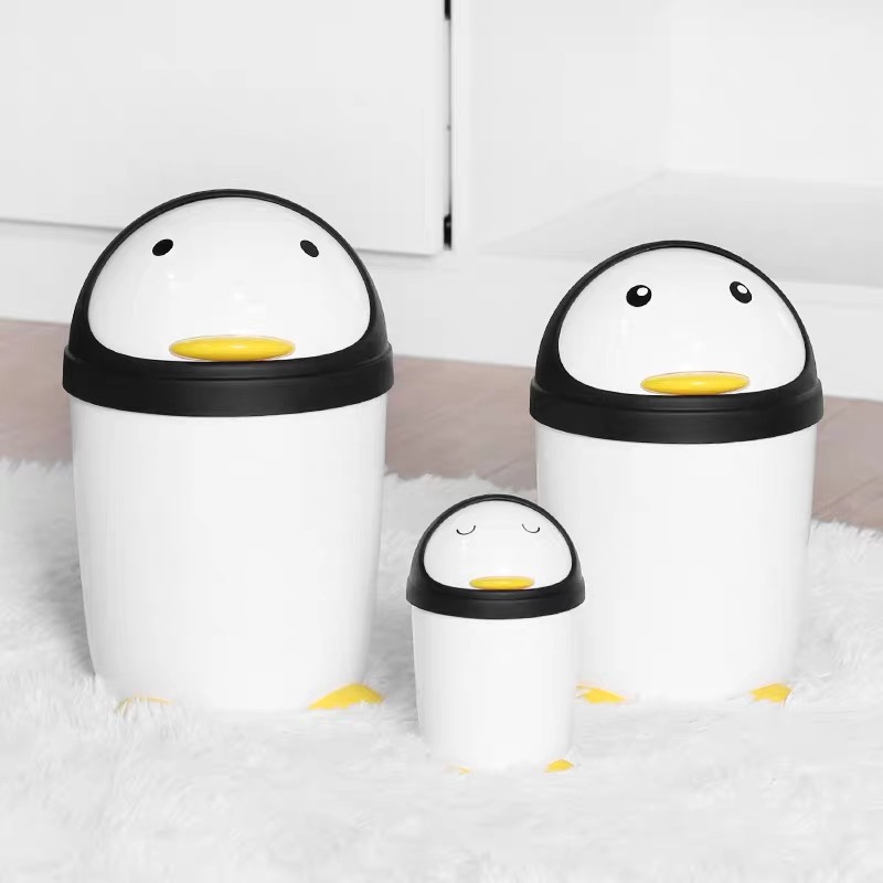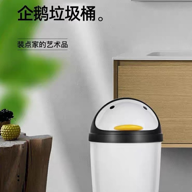 # 顺美卫生桶垃圾桶卡通企鹅塑料圆形卫生桶白色翻盖垃圾筒大小桌厂家