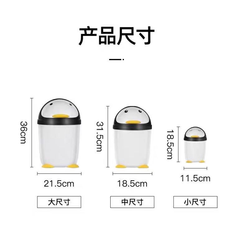 # 顺美卫生桶垃圾桶卡通企鹅塑料圆形卫生桶白色翻盖垃圾筒大小桌品牌