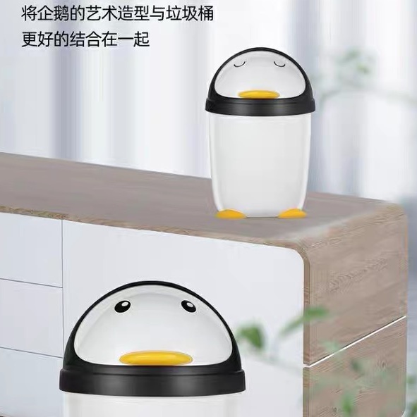 # 顺美卫生桶垃圾桶卡通企鹅塑料圆形卫生桶白色翻盖垃圾筒大小桌批发市场