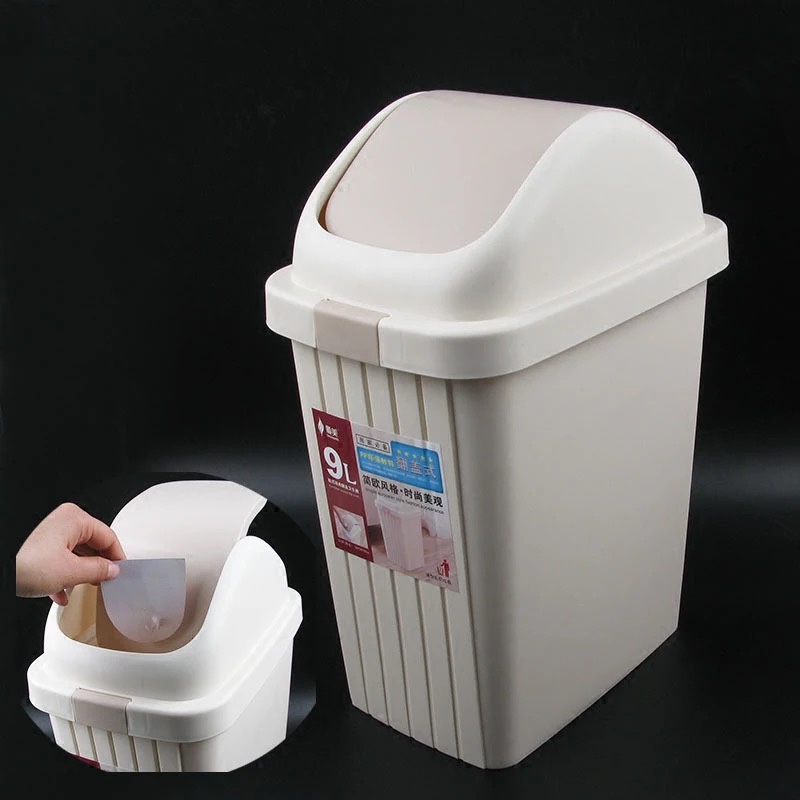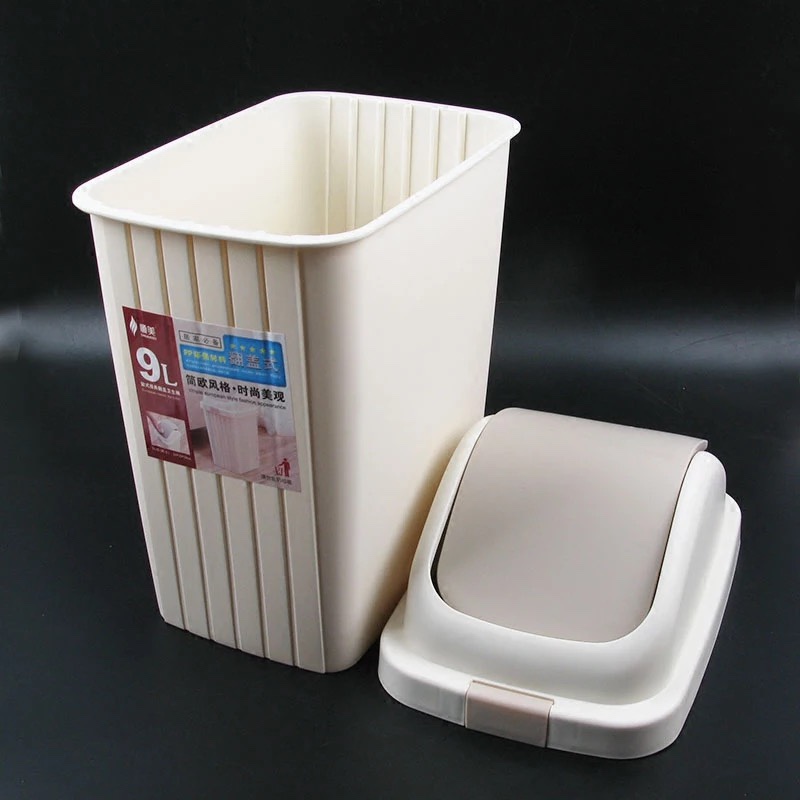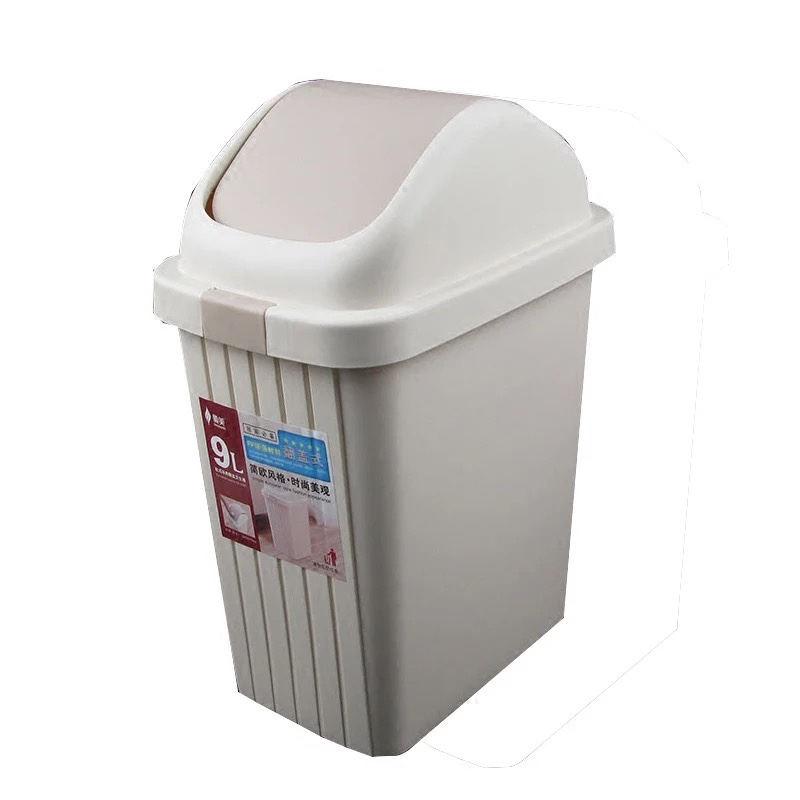 # 顺美优质摇盖垃圾桶家用客厅厨房卫生间米色大号塑料垃圾筒卫生桶厂家