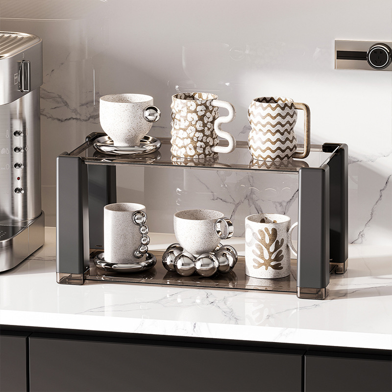 水杯收纳架多层透明桌面创意可叠加杯架防尘家用放保温杯子置物架