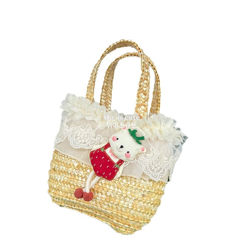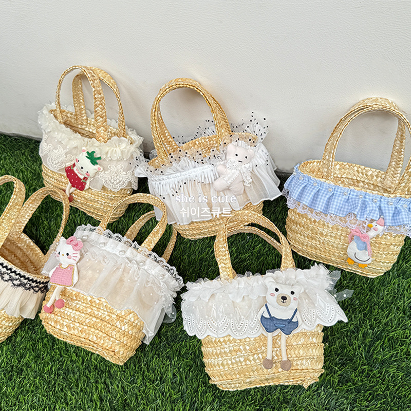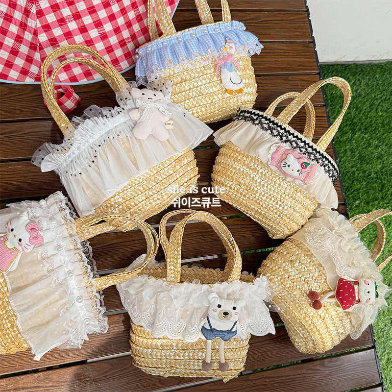 # 夏季原创草编包包女软萌卡哇伊水桶包轻便手提女包甜美挂饰手工篮批发市场