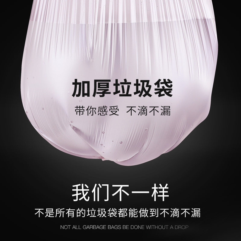 3连包自动收口束口穿绳垃圾袋 抽绳式厨房加厚塑料袋支持定制
