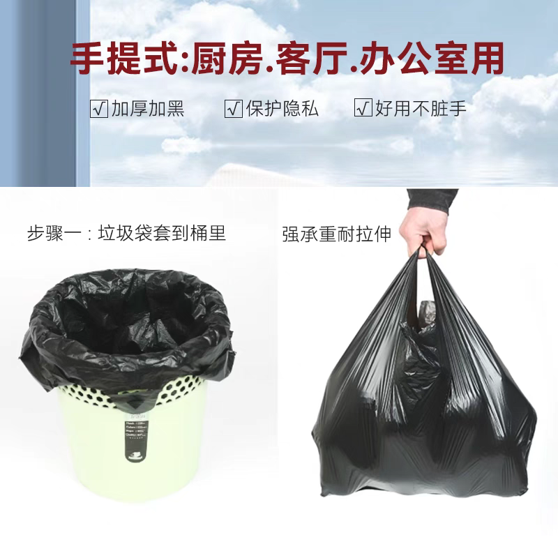 平口垃圾袋加厚加大学生宿舍手提黑色防窥视垃圾袋厨房客厅垃圾袋