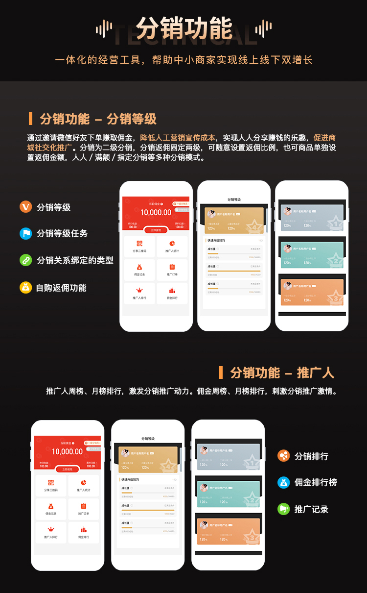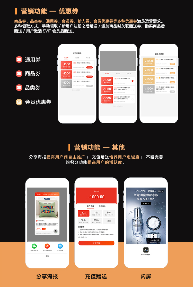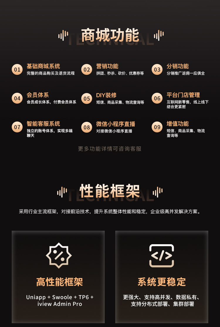 B2B2C多门店线上线下一体化品牌连锁智慧零售电商系统+DIY装修支持小程序+公众号+App源码,基于ThinkPHP6开发,使用Uniapp+Swoole+TP6+iView Admin Pro,高性能保障;更有DIY、多套前端模板适配,便捷的功能扩展及可以二次开发,满足各个行业个性化需求,为企业电商发展提供强有力的保障 。